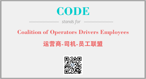 上述内容是“Coalition of Operators Drivers Employees”作为“CODE”的缩写,解释为“运营商-司机-员工联盟”时的信息,以及英文缩略词CODE所代表的英文单词,其对应的中文拼音、详细解释以及在英文中的流行度和相关分类、应用领域及应用示例等。