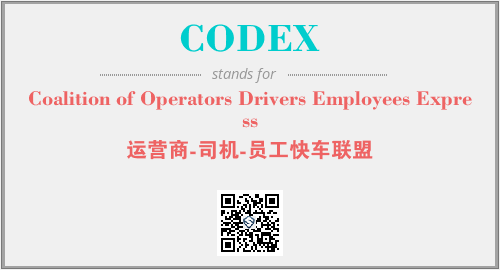 上述内容是“Coalition of Operators Drivers Employees Express”作为“CODEX”的缩写,解释为“运营商-司机-员工快车联盟”时的信息,以及英文缩略词CODEX所代表的英文单词,其对应的中文拼音、详细解释以及在英文中的流行度和相关分类、应用领域及应用示例等。