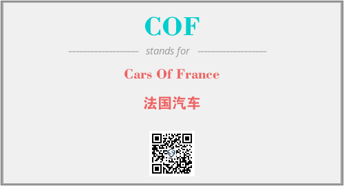 以上为Cars Of France英文缩略词COF的中文解释,以及该英文缩写在英语的流行度、分类和应用领域方面的信息。