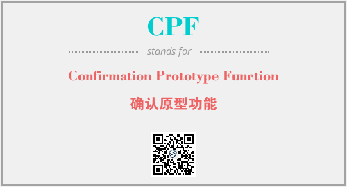 上述内容是“Confirmation Prototype Function”作为“CPF”的缩写,解释为“确认原型功能”时的信息,以及英文缩略词CPF所代表的英文单词,其对应的中文拼音、详细解释以及在英文中的流行度和相关分类、应用领域及应用示例等。