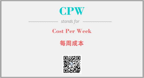以上为Cost Per Week英文缩略词CPW的中文解释,以及该英文缩写在英语的流行度、分类和应用领域方面的信息。