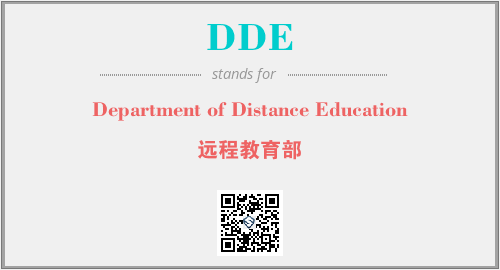 英文缩略词“DDE”经常作为“Department of Distance Education”的英文缩写来使用,中文表示:“远程教育部”。本文将详细介绍英文缩写词DDE所代表英文单词,其对应的中文拼音、详细解释以及在英语中的流行度。此外,还有关于缩略词DDE的分类、应用领域及相关应用示例等。