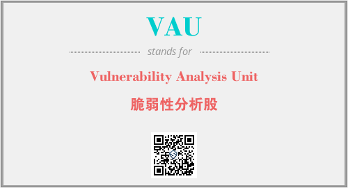 上述内容是“Vulnerability Analysis Unit”作为“VAU”的缩写,解释为“脆弱性分析股”时的信息,以及英文缩略词VAU所代表的英文单词,其对应的中文拼音、详细解释以及在英文中的流行度和相关分类、应用领域及应用示例等。