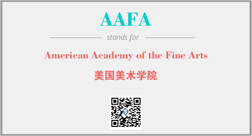 上述内容是“American Academy of the Fine Arts”作为“AAFA”的缩写,解释为“美国美术学院”时的信息,以及英文缩略词AAFA所代表的英文单词,其对应的中文拼音、详细解释以及在英文中的流行度和相关分类、应用领域及应用示例等。