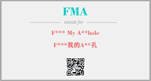以上为F*** My A**hole英文缩略词FMA的中文解释,以及该英文缩写在英语的流行度、分类和应用领域方面的信息。