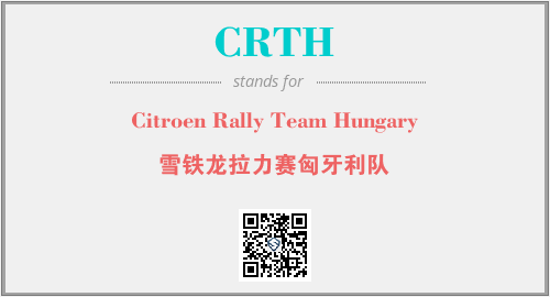 英文缩略词“CRTH”经常作为“Citroen Rally Team Hungary”的英文缩写来使用,中文表示:“雪铁龙拉力赛匈牙利队”。本文将详细介绍英文缩写词CRTH所代表英文单词,其对应的中文拼音、详细解释以及在英语中的流行度。此外,还有关于缩略词CRTH的分类、应用领域及相关应用示例等。