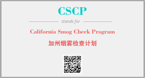 英文缩略词“CSCP”经常作为“California Smog Check Program”的英文缩写来使用,中文表示:“加州烟雾检查计划”。本文将详细介绍英文缩写词CSCP所代表英文单词,其对应的中文拼音、详细解释以及在英语中的流行度。此外,还有关于缩略词CSCP的分类、应用领域及相关应用示例等。