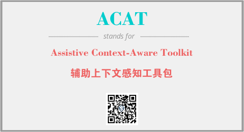 英文缩略词“ACAT”经常作为“Assistive Context-Aware Toolkit”的英文缩写来使用,中文表示:“辅助上下文感知工具包”。本文将详细介绍英文缩写词ACAT所代表英文单词,其对应的中文拼音、详细解释以及在英语中的流行度。此外,还有关于缩略词ACAT的分类、应用领域及相关应用示例等。