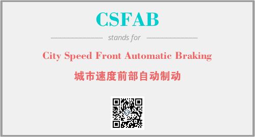 上述内容是“City Speed Front Automatic Braking”作为“CSFAB”的缩写,解释为“城市速度前部自动制动”时的信息,以及英文缩略词CSFAB所代表的英文单词,其对应的中文拼音、详细解释以及在英文中的流行度和相关分类、应用领域及应用示例等。