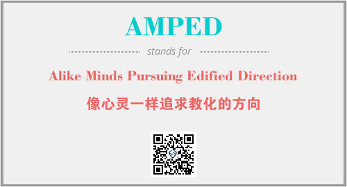 以上为Alike Minds Pursuing Edified Direction英文缩略词AMPED的中文解释,以及该英文缩写在英语的流行度、分类和应用领域方面的信息。