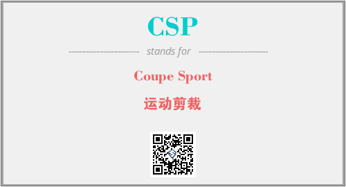 上述内容是“Coupe Sport”作为“CSP”的缩写,解释为“运动剪裁”时的信息,以及英文缩略词CSP所代表的英文单词,其对应的中文拼音、详细解释以及在英文中的流行度和相关分类、应用领域及应用示例等。