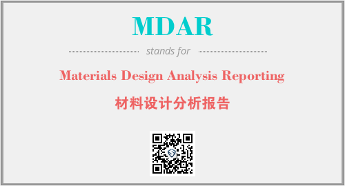以上为Materials Design Analysis Reporting英文缩略词MDAR的中文解释,以及该英文缩写在英语的流行度、分类和应用领域方面的信息。