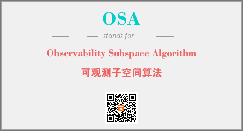 上述内容是“Observability Subspace Algorithm”作为“OSA”的缩写,解释为“可观测子空间算法”时的信息,以及英文缩略词OSA所代表的英文单词,其对应的中文拼音、详细解释以及在英文中的流行度和相关分类、应用领域及应用示例等。