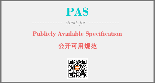 英文缩略词“PAS”经常作为“Publicly Available Specification”的英文缩写来使用,中文表示:“公开可用规范”。本文将详细介绍英文缩写词PAS所代表英文单词,其对应的中文拼音、详细解释以及在英语中的流行度。此外,还有关于缩略词PAS的分类、应用领域及相关应用示例等。