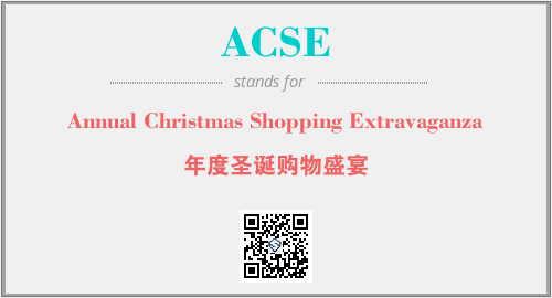 英文缩略词“ACSE”经常作为“Annual Christmas Shopping Extravaganza”的英文缩写来使用,中文表示:“年度圣诞购物盛宴”。本文将详细介绍英文缩写词ACSE所代表英文单词,其对应的中文拼音、详细解释以及在英语中的流行度。此外,还有关于缩略词ACSE的分类、应用领域及相关应用示例等。