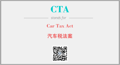 英文缩略词“CTA”经常作为“Car Tax Act”的英文缩写来使用,中文表示:“汽车税法案”。本文将详细介绍英文缩写词CTA所代表英文单词,其对应的中文拼音、详细解释以及在英语中的流行度。此外,还有关于缩略词CTA的分类、应用领域及相关应用示例等。