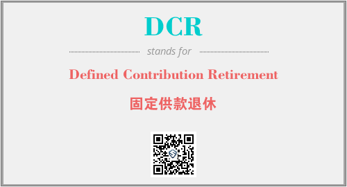 上述内容是“Defined Contribution Retirement”作为“DCR”的缩写,解释为“固定供款退休”时的信息,以及英文缩略词DCR所代表的英文单词,其对应的中文拼音、详细解释以及在英文中的流行度和相关分类、应用领域及应用示例等。