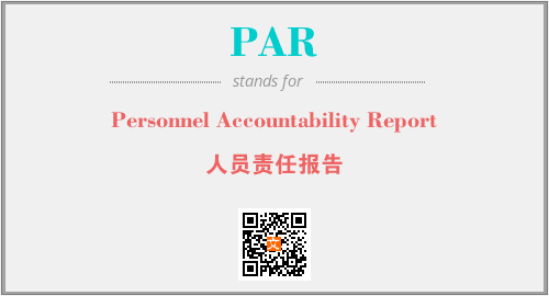 上述内容是“Personnel Accountability Report”作为“PAR”的缩写,解释为“人员责任报告”时的信息,以及英文缩略词PAR所代表的英文单词,其对应的中文拼音、详细解释以及在英文中的流行度和相关分类、应用领域及应用示例等。