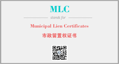 以上为Municipal Lien Certificates英文缩略词MLC的中文解释,以及该英文缩写在英语的流行度、分类和应用领域方面的信息。