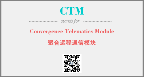 英文缩略词“CTM”经常作为“Convergence Telematics Module”的英文缩写来使用,中文表示:“聚合远程通信模块”。本文将详细介绍英文缩写词CTM所代表英文单词,其对应的中文拼音、详细解释以及在英语中的流行度。此外,还有关于缩略词CTM的分类、应用领域及相关应用示例等。