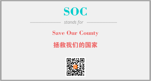英文缩略词“SOC”经常作为“Save Our County”的英文缩写来使用,中文表示:“拯救我们的国家”。本文将详细介绍英文缩写词SOC所代表英文单词,其对应的中文拼音、详细解释以及在英语中的流行度。此外,还有关于缩略词SOC的分类、应用领域及相关应用示例等。