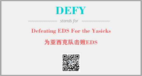 英文缩略词“DEFY”经常作为“Defeating EDS For the Yasicks”的英文缩写来使用,中文表示:“为亚西克队击败EDS”。本文将详细介绍英文缩写词DEFY所代表英文单词,其对应的中文拼音、详细解释以及在英语中的流行度。此外,还有关于缩略词DEFY的分类、应用领域及相关应用示例等。
