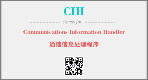 英文缩略词“CIH”经常作为“Communications Information Handler”的英文缩写来使用,中文表示:“通信信息处理程序”。本文将详细介绍英文缩写词CIH所代表英文单词,其对应的中文拼音、详细解释以及在英语中的流行度。此外,还有关于缩略词CIH的分类、应用领域及相关应用示例等。