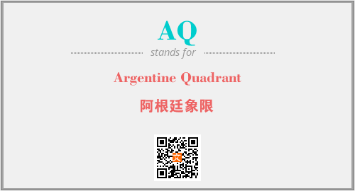 英文缩略词“AQ”经常作为“Argentine Quadrant”的英文缩写来使用,中文表示:“阿根廷象限”。本文将详细介绍英文缩写词AQ所代表英文单词,其对应的中文拼音、详细解释以及在英语中的流行度。此外,还有关于缩略词AQ的分类、应用领域及相关应用示例等。