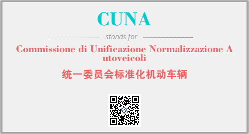 上述内容是“Commissione di Unificazione Normalizzazione Autoveicoli”作为“CUNA”的缩写,解释为“统一委员会标准化机动车辆”时的信息,以及英文缩略词CUNA所代表的英文单词,其对应的中文拼音、详细解释以及在英文中的流行度和相关分类、应用领域及应用示例等。