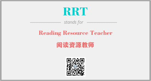 英文缩略词“RRT”经常作为“Reading Resource Teacher”的英文缩写来使用,中文表示:“阅读资源教师”。本文将详细介绍英文缩写词RRT所代表英文单词,其对应的中文拼音、详细解释以及在英语中的流行度。此外,还有关于缩略词RRT的分类、应用领域及相关应用示例等。