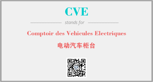 上述内容是“Comptoir des Vehicules Electriques”作为“CVE”的缩写,解释为“电动汽车柜台”时的信息,以及英文缩略词CVE所代表的英文单词,其对应的中文拼音、详细解释以及在英文中的流行度和相关分类、应用领域及应用示例等。