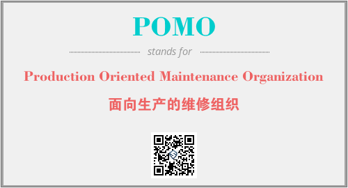英文缩略词“POMO”经常作为“Production Oriented Maintenance Organization”的英文缩写来使用,中文表示:“面向生产的维修组织”。本文将详细介绍英文缩写词POMO所代表英文单词,其对应的中文拼音、详细解释以及在英语中的流行度。此外,还有关于缩略词POMO的分类、应用领域及相关应用示例等。