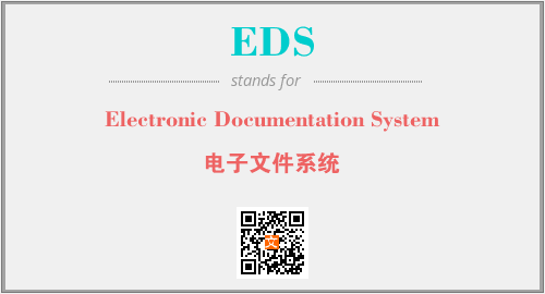 英文缩略词“EDS”经常作为“Electronic Documentation System”的英文缩写来使用,中文表示:“电子文件系统”。本文将详细介绍英文缩写词EDS所代表英文单词,其对应的中文拼音、详细解释以及在英语中的流行度。此外,还有关于缩略词EDS的分类、应用领域及相关应用示例等。
