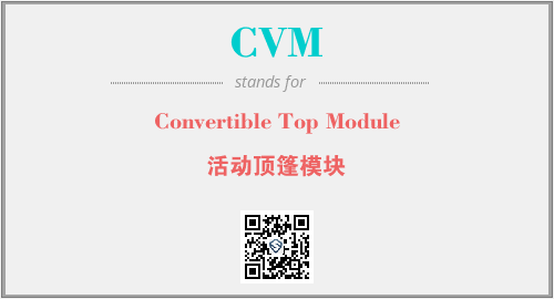 英文缩略词“CVM”经常作为“Convertible Top Module”的英文缩写来使用,中文表示:“活动顶篷模块”。本文将详细介绍英文缩写词CVM所代表英文单词,其对应的中文拼音、详细解释以及在英语中的流行度。此外,还有关于缩略词CVM的分类、应用领域及相关应用示例等。