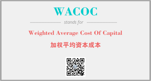 上述内容是“Weighted Average Cost Of Capital”作为“WACOC”的缩写,解释为“加权平均资本成本”时的信息,以及英文缩略词WACOC所代表的英文单词,其对应的中文拼音、详细解释以及在英文中的流行度和相关分类、应用领域及应用示例等。