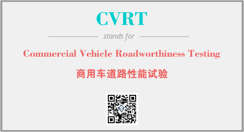 上述内容是“Commercial Vehicle Roadworthiness Testing”作为“CVRT”的缩写,解释为“商用车道路性能试验”时的信息,以及英文缩略词CVRT所代表的英文单词,其对应的中文拼音、详细解释以及在英文中的流行度和相关分类、应用领域及应用示例等。