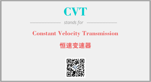 英文缩略词“CVT”经常作为“Constant Velocity Transmission”的英文缩写来使用,中文表示:“恒速变速器”。本文将详细介绍英文缩写词CVT所代表英文单词,其对应的中文拼音、详细解释以及在英语中的流行度。此外,还有关于缩略词CVT的分类、应用领域及相关应用示例等。