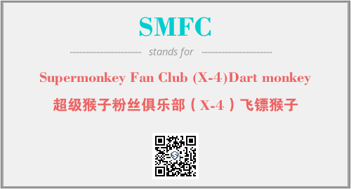 上述内容是“Supermonkey Fan Club (X-4)Dart monkey”作为“SMFC”的缩写,解释为“超级猴子粉丝俱乐部(X-4)飞镖猴子”时的信息,以及英文缩略词SMFC所代表的英文单词,其对应的中文拼音、详细解释以及在英文中的流行度和相关分类、应用领域及应用示例等。