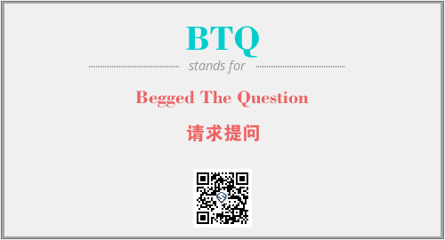 以上为Begged The Question英文缩略词BTQ的中文解释,以及该英文缩写在英语的流行度、分类和应用领域方面的信息。