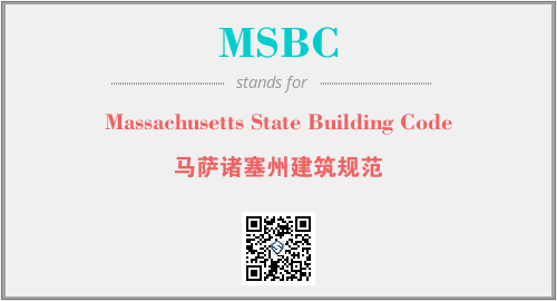 英文缩略词“MSBC”经常作为“Massachusetts State Building Code”的英文缩写来使用,中文表示:“马萨诸塞州建筑规范”。本文将详细介绍英文缩写词MSBC所代表英文单词,其对应的中文拼音、详细解释以及在英语中的流行度。此外,还有关于缩略词MSBC的分类、应用领域及相关应用示例等。