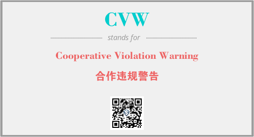上述内容是“Cooperative Violation Warning”作为“CVW”的缩写,解释为“合作违规警告”时的信息,以及英文缩略词CVW所代表的英文单词,其对应的中文拼音、详细解释以及在英文中的流行度和相关分类、应用领域及应用示例等。