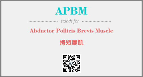 上述内容是“Abductor Pollicis Brevis Muscle”作为“APBM”的缩写,解释为“拇短展肌”时的信息,以及英文缩略词APBM所代表的英文单词,其对应的中文拼音、详细解释以及在英文中的流行度和相关分类、应用领域及应用示例等。