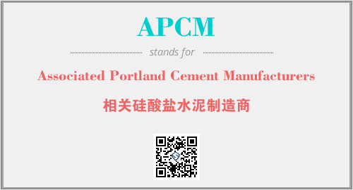 英文缩略词“APCM”经常作为“Associated Portland Cement Manufacturers”的英文缩写来使用,中文表示:“相关硅酸盐水泥制造商”。本文将详细介绍英文缩写词APCM所代表英文单词,其对应的中文拼音、详细解释以及在英语中的流行度。此外,还有关于缩略词APCM的分类、应用领域及相关应用示例等。