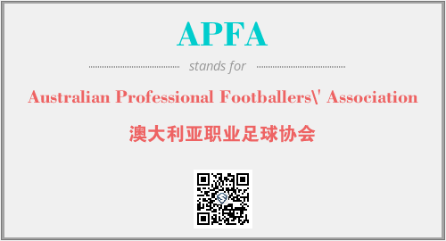 上述内容是“Australian Professional Footballers\' Association”作为“APFA”的缩写,解释为“澳大利亚职业足球协会”时的信息,以及英文缩略词APFA所代表的英文单词,其对应的中文拼音、详细解释以及在英文中的流行度和相关分类、应用领域及应用示例等。