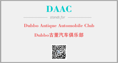 上述内容是“Dubbo Antique Automobile Club”作为“DAAC”的缩写,解释为“Dubbo古董汽车俱乐部”时的信息,以及英文缩略词DAAC所代表的英文单词,其对应的中文拼音、详细解释以及在英文中的流行度和相关分类、应用领域及应用示例等。