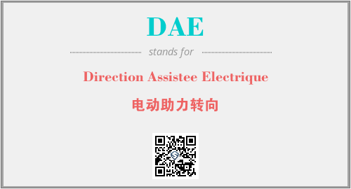 上述内容是“Direction Assistee Electrique”作为“DAE”的缩写,解释为“电动助力转向”时的信息,以及英文缩略词DAE所代表的英文单词,其对应的中文拼音、详细解释以及在英文中的流行度和相关分类、应用领域及应用示例等。