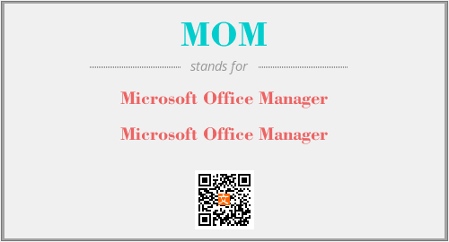 上述内容是“Microsoft Office Manager”作为“MOM”的缩写,解释为“Microsoft Office Manager”时的信息,以及英文缩略词MOM所代表的英文单词,其对应的中文拼音、详细解释以及在英文中的流行度和相关分类、应用领域及应用示例等。