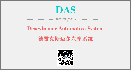 以上为Draexlmaier Automotive System英文缩略词DAS的中文解释,以及该英文缩写在英语的流行度、分类和应用领域方面的信息。