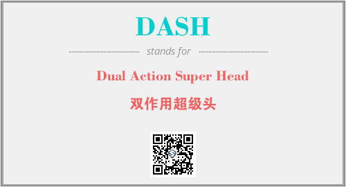 上述内容是“Dual Action Super Head”作为“DASH”的缩写,解释为“双作用超级头”时的信息,以及英文缩略词DASH所代表的英文单词,其对应的中文拼音、详细解释以及在英文中的流行度和相关分类、应用领域及应用示例等。