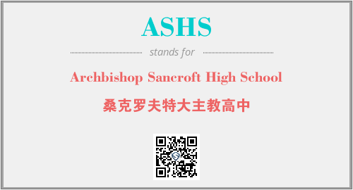 英文缩略词“ASHS”经常作为“Archbishop Sancroft High School”的英文缩写来使用,中文表示:“桑克罗夫特大主教高中”。本文将详细介绍英文缩写词ASHS所代表英文单词,其对应的中文拼音、详细解释以及在英语中的流行度。此外,还有关于缩略词ASHS的分类、应用领域及相关应用示例等。